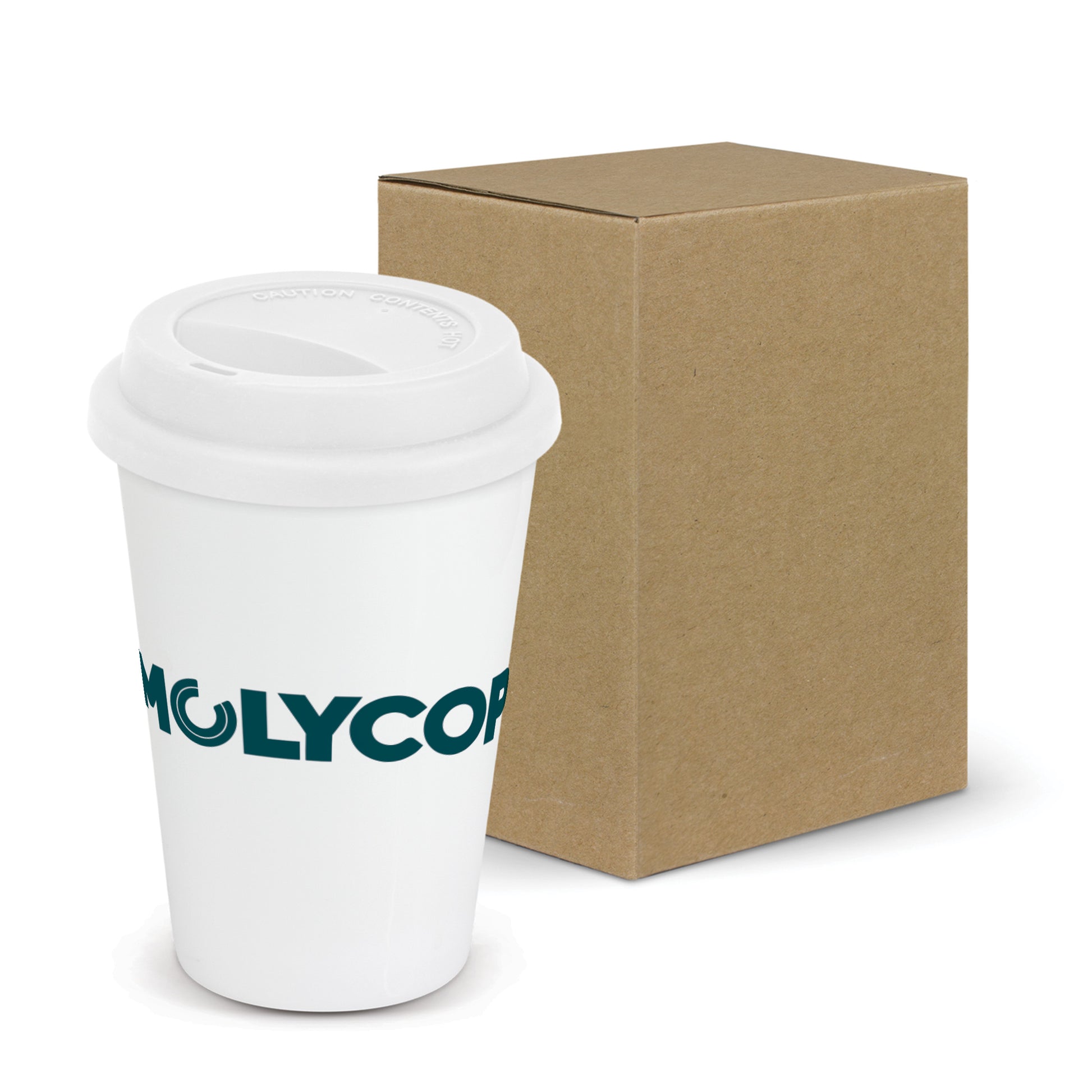 300ml double wall ceramic coffee cup which is manufactured for full colour wrap around branding. The double wall keeps drinks hot for longer and remains comfortable to hold. This product is not dishwasher safe and handwashing is recommended.
